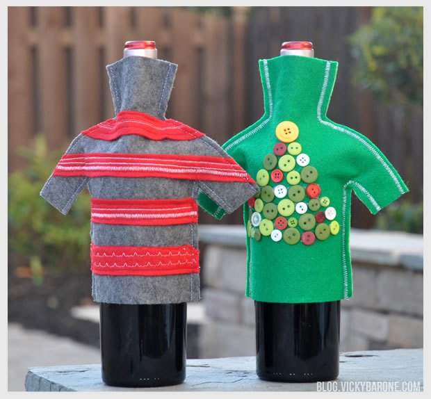Call us biased, but our favorites are the ugly Christmas sweatered bottles we made last year: