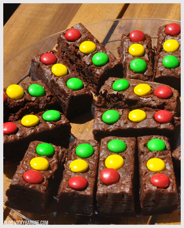Our sweet former nanny brought these delicious brownies to my youngest’s birthday party a few weeks ago. How cute is it that they look like little traffic lights? They went perfectly with the race car theme! The birthday boy especially loved sneaking up to the table to pick off the m&ms and snack on them while he waited to blow out the candles on his cake. They were a hit, all around!