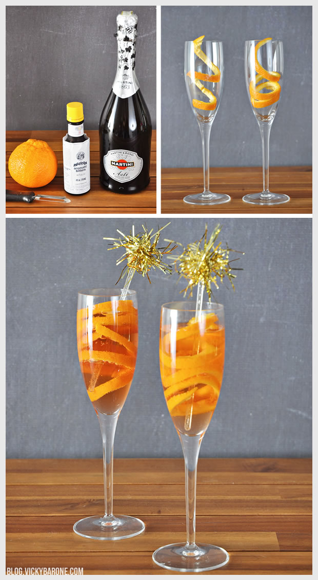 Champagne with a twist! Literally! This orange champagne is impressive, delicious, and perfect for a New Year’s Eve toast.