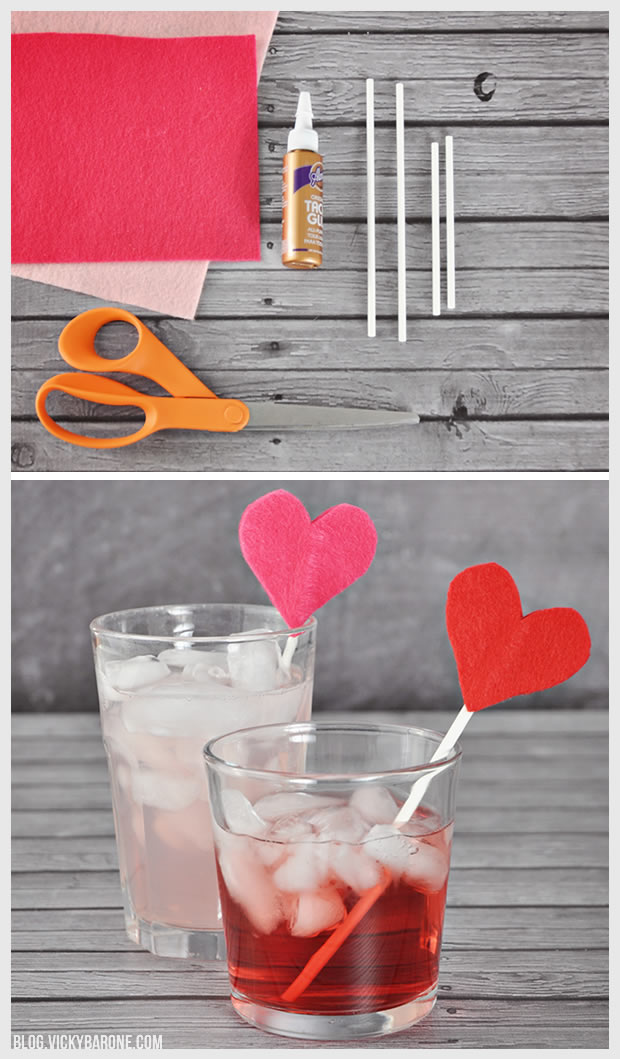 These pretty little drink stirrers had another life last year as cake toppers! This year, we put them to good use once more as sweet decorations in our Valentine’s Day drinks. Keep reading to see how to easily make your own versatile felt hearts…